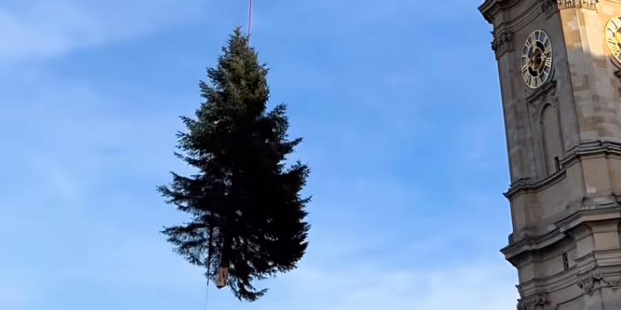 In diesem Jahr ist der Christbaum 16 Meter gross und ungefähr 2,7 Tonnen schwer, wie der Kanton St. Gallen schreibt. Gespendet hat ihn die Familie Huser aus Stein AR.