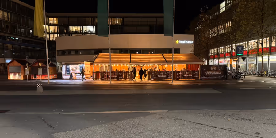 Seit gut einer Woche steht das «Haus vom Nikolaus». Daneben sind kleine Weihnachts-Chalets, die Marroni oder Süssigkeiten wie Crêpes verkaufen. Typisch Advents-Zeit.