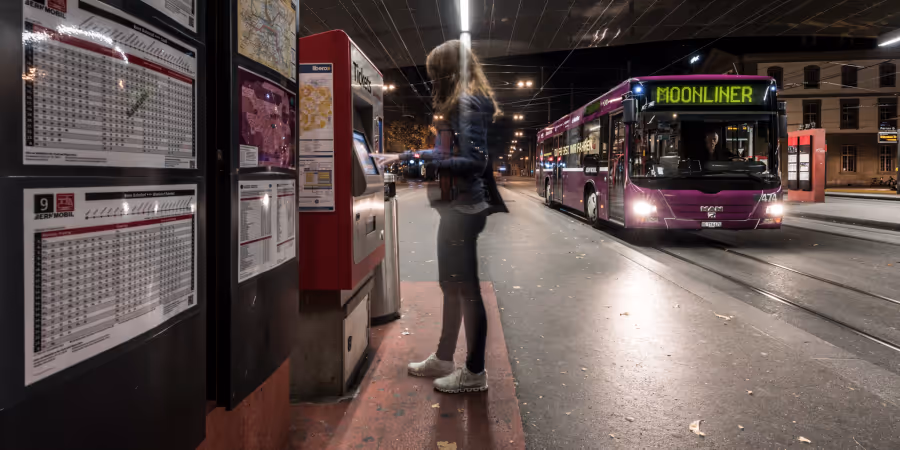 An den Wochenenden bringen rund 80 Moonliner-Linien Nachtschwärmerinnen und Nachtschwärmer aus Bern, Thun, Interlaken, Biel und Solothurn heim.