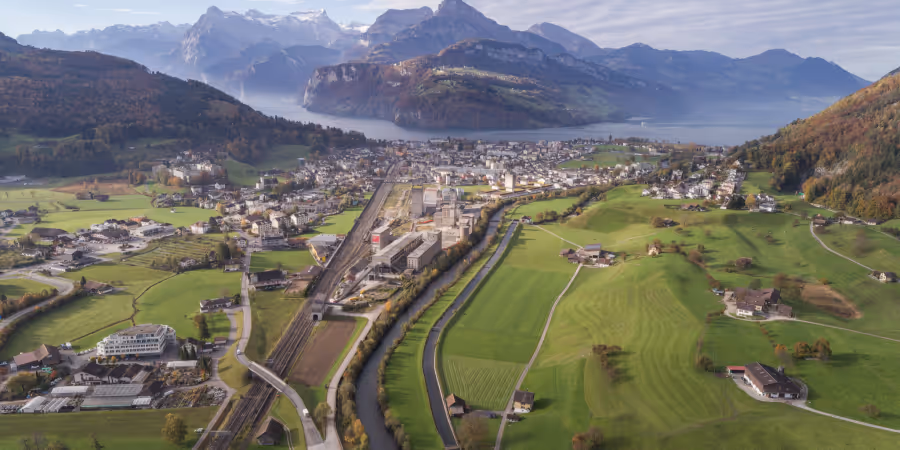 Im Gebiet nördlich des Bahnhofs Brunnen soll das Areal einer ehemaligen Zementfabrik neu überbaut werden. Dazu muss eine neue Zufahrtsstrasse realisiert werden. Ein geplanter Hochkreisel wurde von den Stimmberechtigten der Gemeinde Ingenbohl abgelehnt.