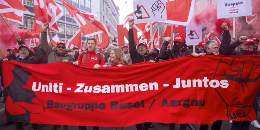 Grund für die Kundgebung: In diesem Jahr läuft der Landesmantelvertrag der rund 80'000 Bauarbeitenden aus. Die fünfte Verhandlungsrunde zwischen den Gewerkschaften und dem Baumeisterverband ging Ende Oktober ergebnislos zu Ende.