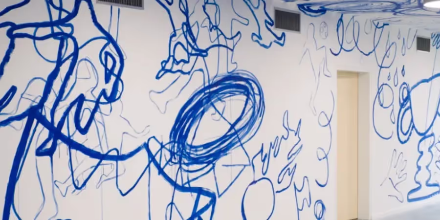 Im Bistro prangte vor einem Jahr ein wildes Gekritzel in Blau, in dem auf den zweiten Blick Fussball-Sujets erkennbar sind, einzelne Fussballspieler, ein Schuh, ein Pokal.