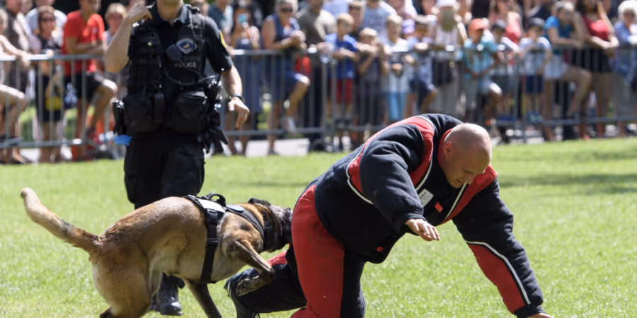 Der Polizist nahm darauf den Diensthund aus dem Kofferraum, forderte den Flüchtenden zwei Mal zum Stehenbleiben auf und drohte den Hundeeinsatz an. Als dies nicht fruchtete, liess er das Tier mit dem Befehl «attaque» von der Leine.