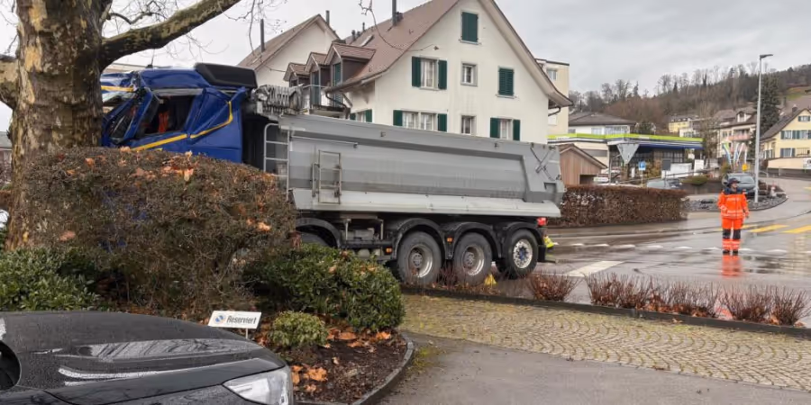 Lastwagenchauffeur fährt in Uetikon am See in einen Baum