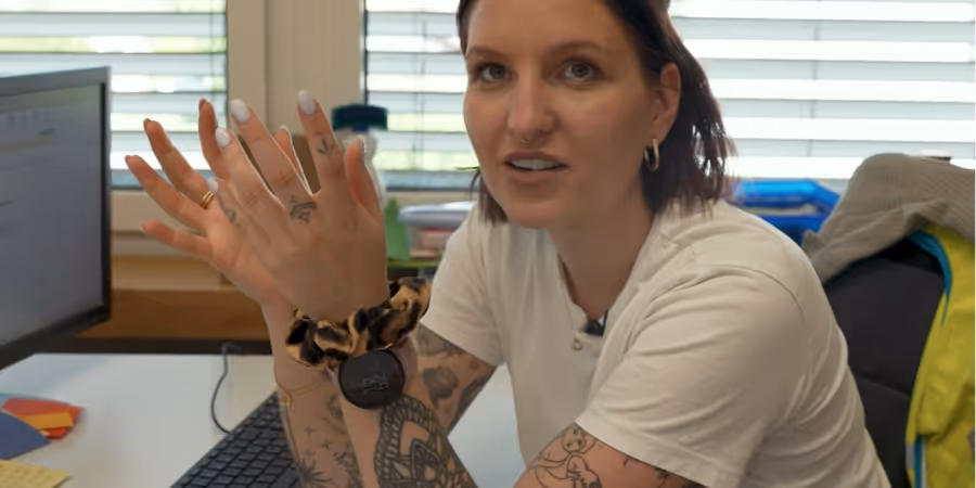 Auch Heilpädagogin Jasna Hollenstein geht mit Gesichtsschmuck zur Arbeit. Neben einem Septum-Piercing trägt sie auch ein Oberlippenpiercing. Ihre Arme zieren Tattoos. Dies zeigt ein kürzlich ausgestrahlter SRF-Dok, der Quereinsteigerinnen und Quereinsteiger begleitete.