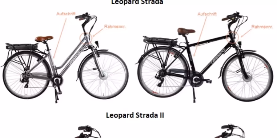 Betroffen sind die E-Bikes mit der Rahmenaufschrift «Strada» deren Rahmennummer mit «CHS 172» beginnt sowie alle Modelle mit der Rahmenaufschrift «Strada II».
