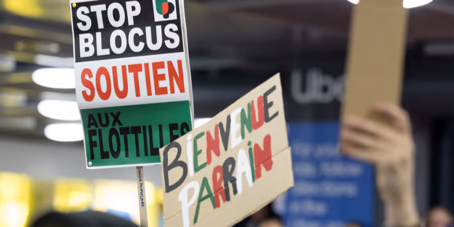 Rund 300 Demonstrierende empfingen die neun Schweizer Aktivistinnen und Aktivisten am Flughafen Genf, wie ein Reporter der Nachrichtenagentur Keystone-SDA berichtete. Sie waren mit Plakaten ausgestattet und stimmten Parolen zu Ehren der Flottille an.