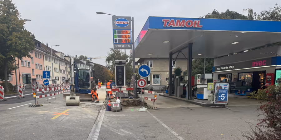 - Dies zum Leidwesen einer Tankstelle. Die Baustelle erschwert An- und Ausfahrt.