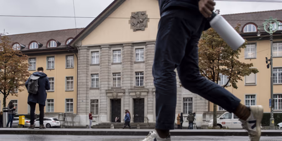 Eine Gruppe Unterstützer von Stauffacher fand sich am Mittwoch vor dem Bezirksgericht Zürich ein. Ein grösseres Polizeiaufgebot stand bereit.