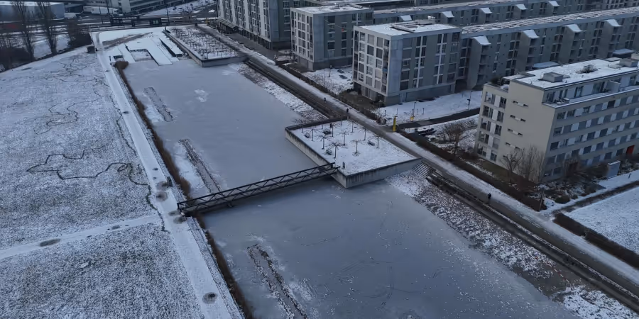 - Der Zürcher Glattpark-Weiher ist von einer dünnen Eisschicht überzogen.