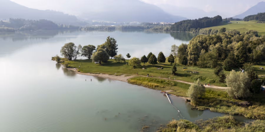 Die Polizei hat am Donnerstagnachmittag zwei Personen bei Morlon FR aus dem Greyerzersee retten können. Der niedrige Wasserstand im See hatte eine Landzunge freigelegt, auf die sich Mutter und Sohn vorgewagt hatten.