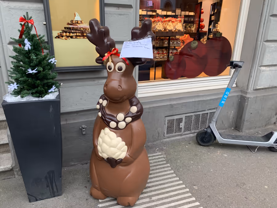 Das Schokoladen-Unternehmen bestätigt den Vorfall auf Anfrage: «In der Tat, seit ein paar Tagen steht unser Rentier Finn leider ohne Mütze vor unserer Chocolaterie Zürich Stadelhofen.» Dies schreibt Läderach-Mediensprecher Matthias Goldbeck.