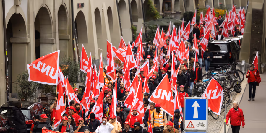 Westschweizer Bauarbeiter ziehen gemeinsam auf die Strasse