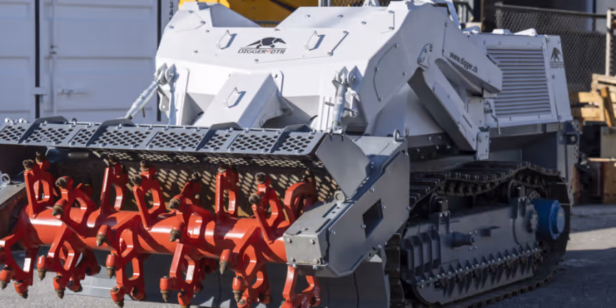 Der Digger D-250 wurde in Tavannes entwickelt und gebaut und ist eine Raupenmaschine, die aus einer Kombination von Traktor und Panzer entstanden ist. Die zwölf Tonnen schwere gepanzerte Maschine ist an der Vorderseite mit einer Minenräumfräse ausgestattet, die die Vegetation entfernt.