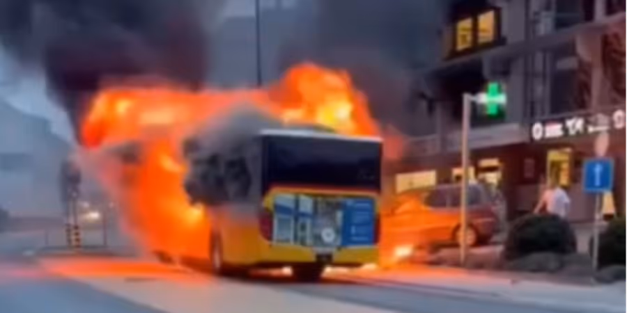 Das Feuer breitete sich in Windeseile im Fahrgastraum aus. Binnen kurzer Zeit stand das Postauto Kerzers FR lichterloh in Flammen. Nach bisherigen Erkenntnissen übergoss sich ein etwa 65-jähriger Mann im Bus mit einer brennbaren Flüssigkeit und zündete sich an.