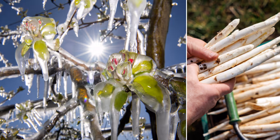 Der Kälteeinbruch bremst Schweizer Felder aus. Während Obstbauern um ihre Kulturen bangen, dürfte sich die Spargelsaison verzögern.