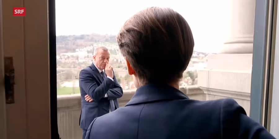 Kurze Zeit später steht Landolt Ramser am Mikrofon von SRF gegenüber. Die beiden unterhalten sich über die Boni für systemrelevante Banken in der Schweiz. Über höhere Eigenkapitalrenditen und die Aufgaben der Finma.