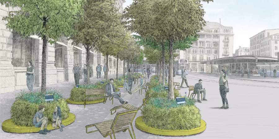 Mehr Grün für Zürich: In den kommenden Tagen stellt die Stadt rund 50 Jungbäume auf dem Paradeplatz und an der Bahnhofstrasse auf.