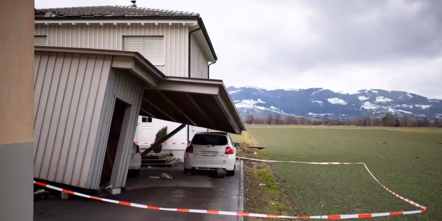 Besonders vom Sturmtief betroffen waren Ortschaften im Kanton St. Gallen. Rund 20 Mal mussten die Einsatzkräfte ausrücken. Das genaue Ausmass des Schadens wurde erst bei Tagesanbruch ersichtlich. Besonders heftig wütete der Sturm in Montlingen im Rheintal.