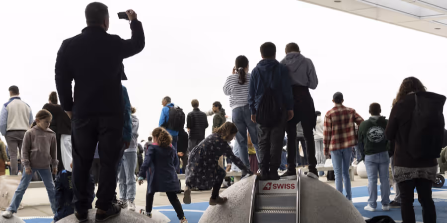 Dort wurde das neue Flaggschiff der Swiss von der Flughafenfeuerwehr mit einer Wasserfontäne getauft. Das Ereignis lockte zahlreiche Aviatikfans und Neugierige an, die die Landung gegen 15.30 Uhr beobachteten.
