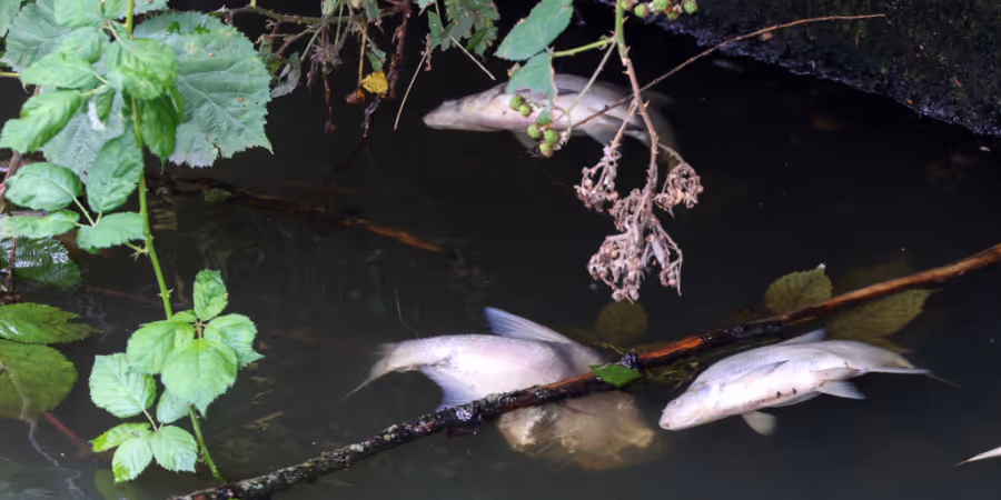 Die Polizei wurde am Mittwochmorgen über die Verschmutzung des Baches informiert. Vor Ort stellte der Wildhüter ein Fischsterben fest. Betroffen war ein Abschnitt von 2,5 Kilometern Länge, wie die Polizei am Donnerstag in einer Mitteilung schrieb.