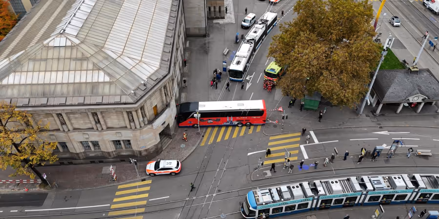 Wie die Stadtpolizei Zürich mitteilt, kam es um kurz nach 13 Uhr zu dem Unfall. Der 68-jährige Chauffeur des Busses fuhr mit rund zwei Dutzend Touristinnen und Touristen auf der Rämistrasse in Richtung Bellevue.