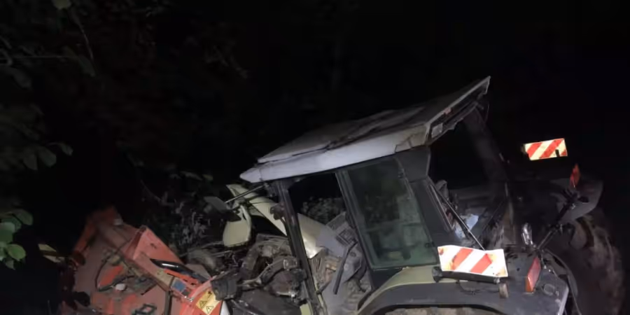 Traktor und Anhänger rollten rund hundert Meter weit einen Abhang hinunter in den Moosbach. Dort kam das Gespann zum Stillstand. Durch den Aufprall wurden die Maschinen stark beschädigt und es floss Öl und eine kleine Menge Diesel in den Bach.