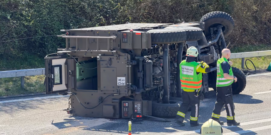 Das Fahrzeug, ein sogenanntes geschütztes Mannschaftstransportfahrzeug, sei im Betzholzkreisel auf die Seite gekippt, sagte ein Sprecher der Armee gegenüber Keystone-SDA. Andere Fahrzeuge seien nicht in den Unfall involviert gewesen.