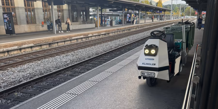 - Plötzlich fährt ein E-Küderwägeli über die Perrons – mit NW-Nummernschild.