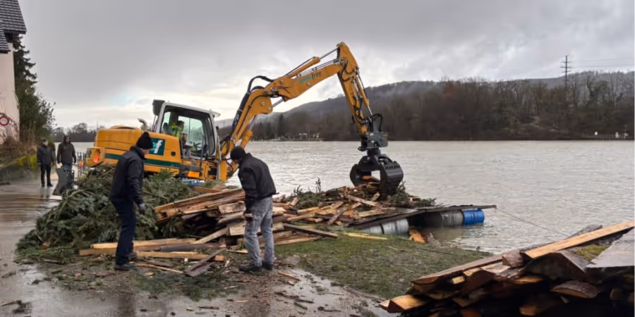 Das Floss für das traditionelle Fasnachtsfeuer von Kaiseraugst AG im Rhein ist gesunken. Aufgrund der starken Wassermassen ist es in der Nacht auf Dienstag an den Pollern aufgelaufen und leckgeschlagen, wie das Fasnachtscomité auf Anfrage der Nachrichtenagentur Keystone-SDA sagte.
