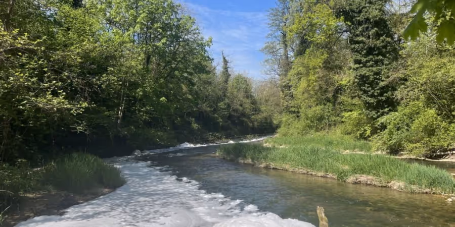 Der Schaum auf der Ergholz bei Füllinsdorf BL hat bis am Sonntagmittag noch nicht vollständig entfernt werden können. Das Abwasser aus der Kläranlage wird deshalb gemäss dem Kanton Basel-Landschaft weiterhin umgeleitet.