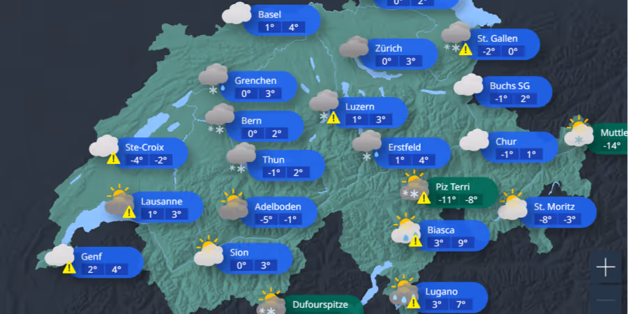 Im Flachland sind die Temperaturen am heutigen Mittwochnachmittag um 1 Grad. Die herrschende Bise wird in der zweiten Tageshälfte stärker, meldet der Wetterdienst.