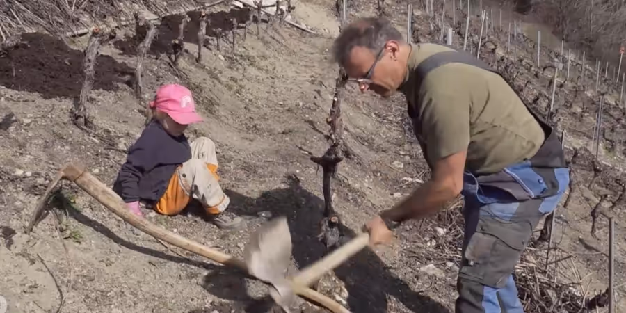Die sinkende Nachfrage hat schwere Folgen für Winzer in der Schweiz, wie das Beispiel von Bruno Perroud zeigt. Der Hobby-Winzer hat Ende Februar damit begonnen, mit seiner Familie einen Teil seiner Reben in Savièse VS auszureissen.