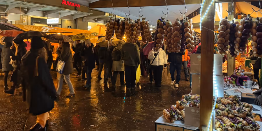 - Trotz Regen lockt der Zibelemärit die Massen in die Stadt.