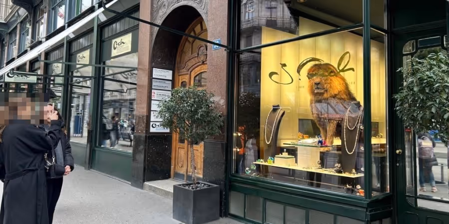 - Ein ausgestopfter Löwe im Schaufenster eines Zürcher Juweliers sorgt für grosses Aufsehen.