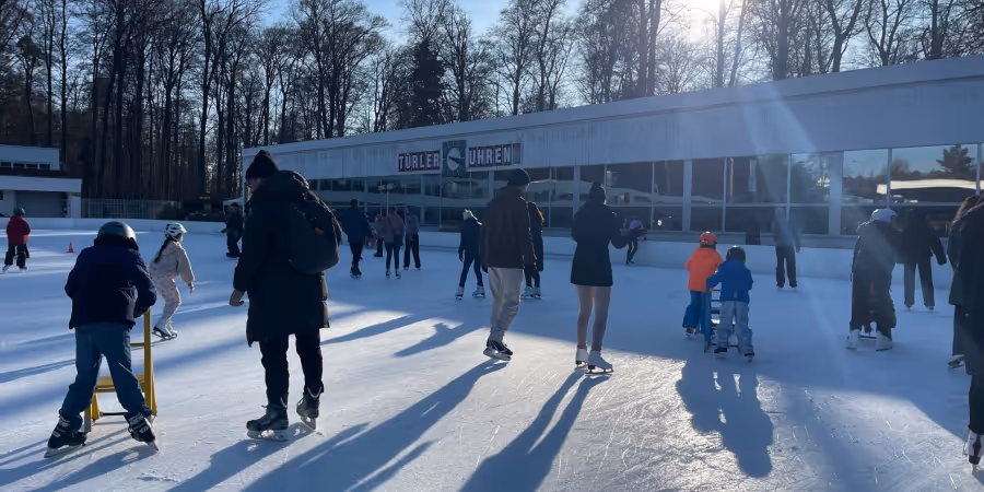 Die Stimmung erinnerte eher an einen Frühlingstag als an einen klassischen Winterausflug. Laut mehreren Anwesenden war die Eisbahn «schon lange nicht mehr so voll».