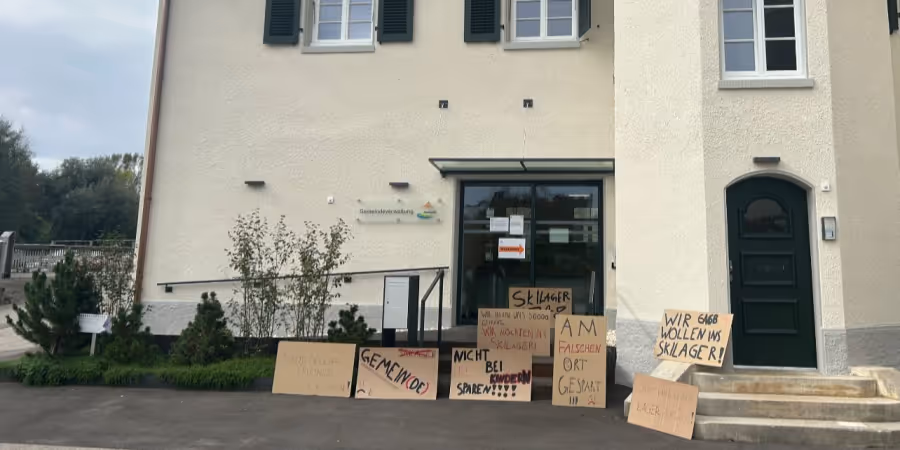 - Die Kinder sind verärgert und protestieren mit Schildern vor der Gemeindeverwaltung.