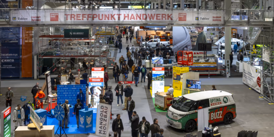 Unter anderem lassen sich bei der diesjährigen Ausgabe Handwerkerinnen und Handwerker bei der Arbeit über die Schultern schauen. In der Halle 1 bauen 15 Betriebe ein doppelstöckiges, begehbares Wohnhaus aus. So sind Maurer, Plattenleger, Solarteuer daran beteiligt.