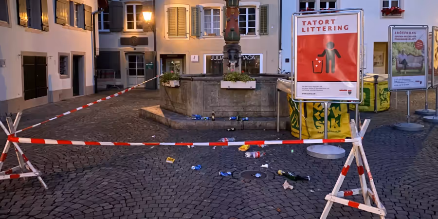 Von Freitag, 17. bis Samstag, 18. September 2021, wurde an neuralgischen Stellen in der Stadt der Abfall liegen gelassen. Die entsprechenden «Littering-Hotspots» wurden also nicht wie üblich gereinigt, sondern markiert, um den Passanten die Auswirkungen von Littering vor Augen zu führen.