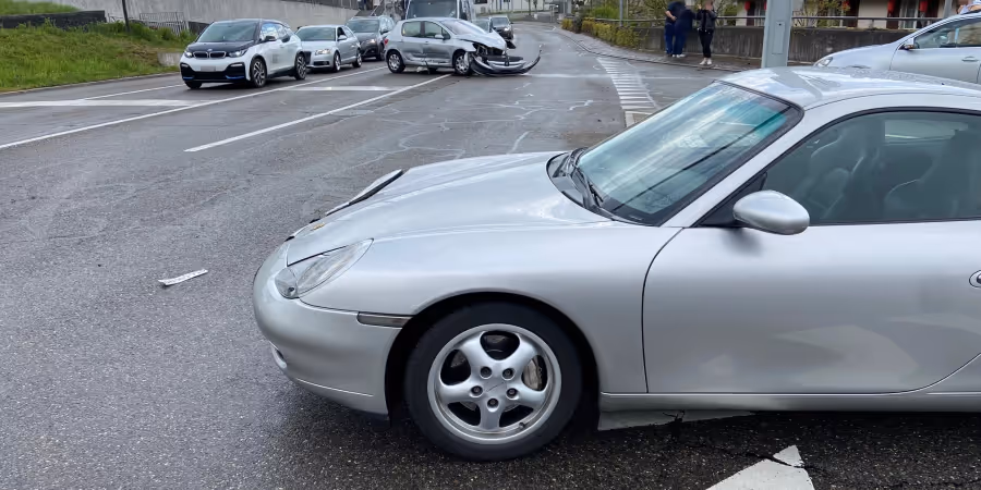 Am Montag, kurz nach 16.10 Uhr, kollidierten ein grauer Peugeot und ein grauer Porsche auf der Kreuzung Badenerstrasse und Zürcherstrasse in Bremgarten.