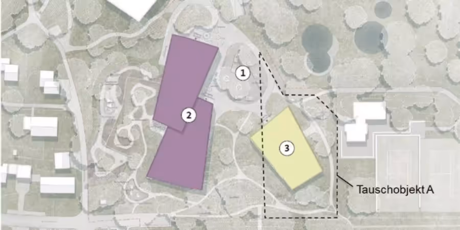 Um eine sinnvolle Gebäudeanordnung und einen nahtlosen Betrieb erzielen zu können, soll die Sihlsana AG ein Stück Land der Stadt im Bereich der heutigen Tennisplätze erhalten (Tauschobjekt A). Dort werden die neuen Alterswohnungen realisiert.
