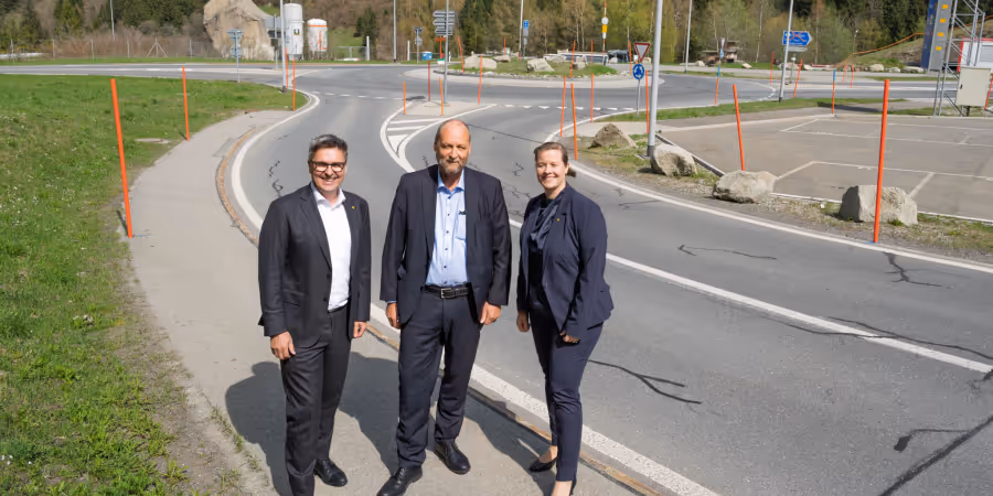 «Die Neugestaltung des Knotens Göschenen sorgt für einen besseren Abfluss des Verkehrs auf die Autobahn und entlastet sowohl die GotthardPassstrasse als auch die Gemeinden im Urner Oberland. Zusätzlich wird mit dem Umbau die Verkehrssicherheit erhöht», sagt Astra-Direktor Jürg Röthlisberger bei einem Treffen mit Baudirektor Hermann Epp und Sicherheitsdirektorin Céline Huber.