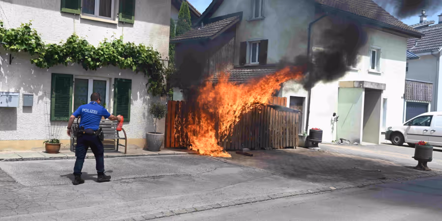 Mittels Feuerlöscher und Wasser aus einem Gartenschlauch konnte die Patrouille mit Unterstützung von Passanten das Feuer löschen. Die örtliche Feuerwehr stellte sicher, dass das Feuer nicht erneut ausbrach. Die Brandursache ist noch unklar. Personen wurden keine verletzt.