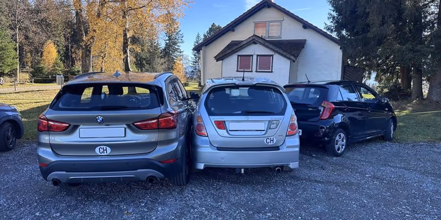 In der Folge kollidierte das Fahrzeug mit einem parkierten Kleinwagen und schob diesen wiederum in zwei weitere, parkierte Fahrzeuge.