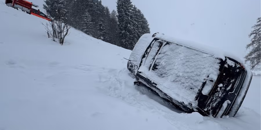 Das Fahrzeug geriet dabei ins Rutschen und kam gegen das rechtsseitige Schneebord am Fahrbahnrand. Daraufhin geriet der Geländewagen weiter über das abfallende Wiesenbord und überschlug sich dabei mehrmals.