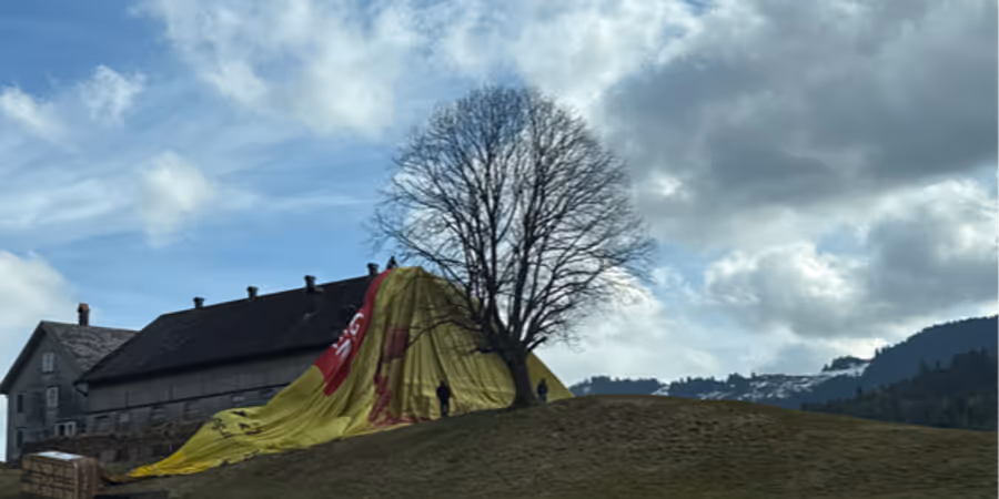 Am Samstag wurde ein entleerter Heissluftballon in Gonten AI von einer Windböe erfasst. In der Folge flog der Ballon auf ein Stalldach.