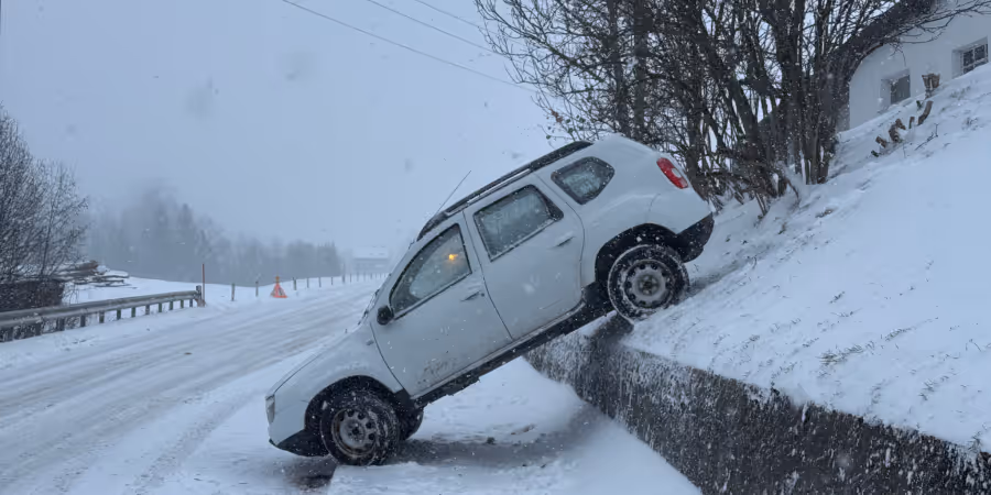 Am Samstag kam eine Frau (57) mit ihren SUV auf der schneebedeckten Strasse in Gontenbad AI ins Rutschen und stürzte ein Wiesenbord hinab. Sie blieb unverletzt.