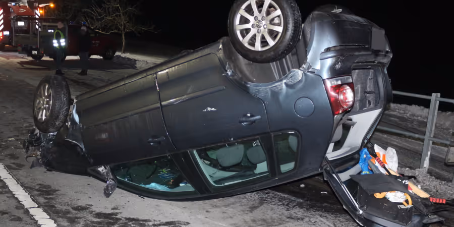 Ein 20-jähriger Autofahrer geriet am Montagabend in Oberegg AI mit seinem VW Polo ins Schleudern. Das Fahrzeug überschlug sich.