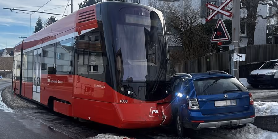 Am Freitag kam es in Speicher AR zu einer Kollision zwischen einem Auto und einer Komposition der Appenzeller Bahnen. Es entstand Sachschaden.