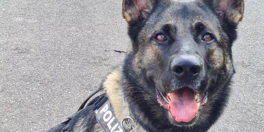 Diensthund «Baron» im Einsatz: im Gras versteckt
